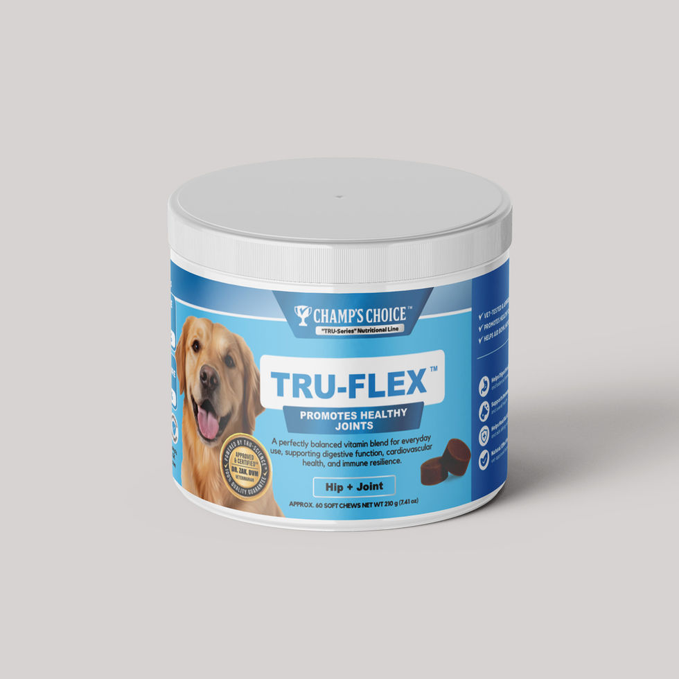 Champ’s Choice Hip & Joint Chew: formulated to help support joint flexibility, lubrication, and cartilage health. Ideal for active, large-breed, or senior dogs, these chews combine clinically researched actives with natural flavoring to ensure high palatability and daily compliance. Intended for daily joint support and mobility maintenance for all breeds and life stages.